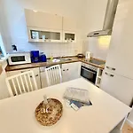 Eine Küchenzeile mit einem Wasserkocher, einem Kühlschrank und einem Herd gehört zur Ausstattung dieses 40 m² großen Apartments für Selbstversorger. Gäste können 10 Minuten Fußweg von hier entfernt, an der Bushaltestelle Warnemuende Kirchenplatz auch einen Bus nehmen, um das ganze Rostock zu erkunden.